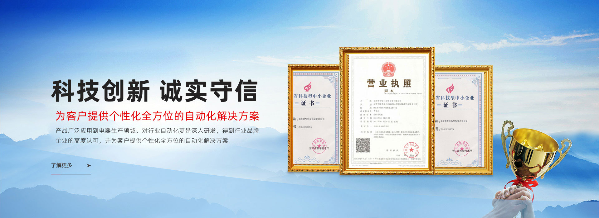 樂清市伊宏自動化設備有限公司創(chuàng)立于2013年,與中國電器之都樂清市柳市鎮(zhèn)相鄰,公司擁有現(xiàn)代化廠房,是一家專業(yè)研發(fā)低壓電器自動化生產(chǎn)的科技型企業(yè),擁有多項電器自動化生產(chǎn)設備專利,公司生產(chǎn)銷售的設備有各種微型斷路器裝配生產(chǎn)線,各種斷路器滅弧室自動化生產(chǎn)設備,各種斷路器磁芯自動化生產(chǎn)設備,各種斷路器磁組件及機械聯(lián)動機構(gòu)組件自動化生產(chǎn)設備,各種斷路器組件焊接設備,以及機器人協(xié)同自動化配套設備定制。